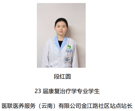 段红圆,23届康复治疗学专业学生,医联医养服务(云南)有限公司金江路社区站点站长。
