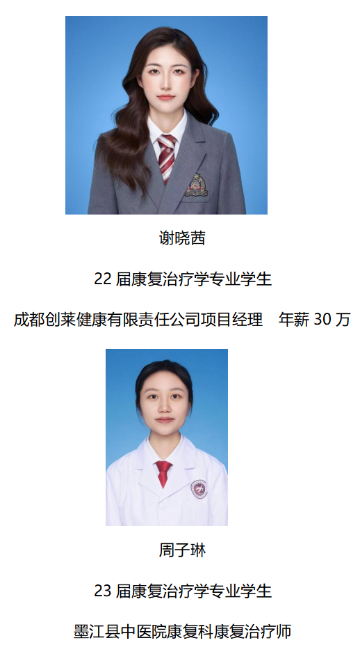 就业案例:谢晓茜,22届康复治疗学专业学生,成都创莱健康有限责任公司项目经理 年薪30万;